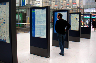 複数のディスプレイに対し異なる情報を自由にレイアウトし、スケジュール通りに表示します。